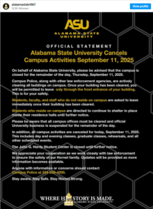 Alabama State University (ASU) also entered lockdown after receiving what they described as “terroristic threats.” Classes and activities were suspended, and students and staff were told to remain indoors or avoid campus altogether.