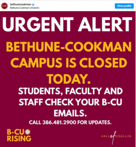 Bethune-Cookman University (BCU) announced it’s closed today and has cancelled all classes, due to a potential threat to campus safety.