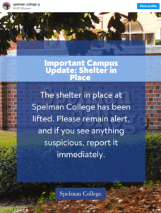Though Spelman College has not received any threats, the HBCU enacted a precautionary shelter-in-place order.