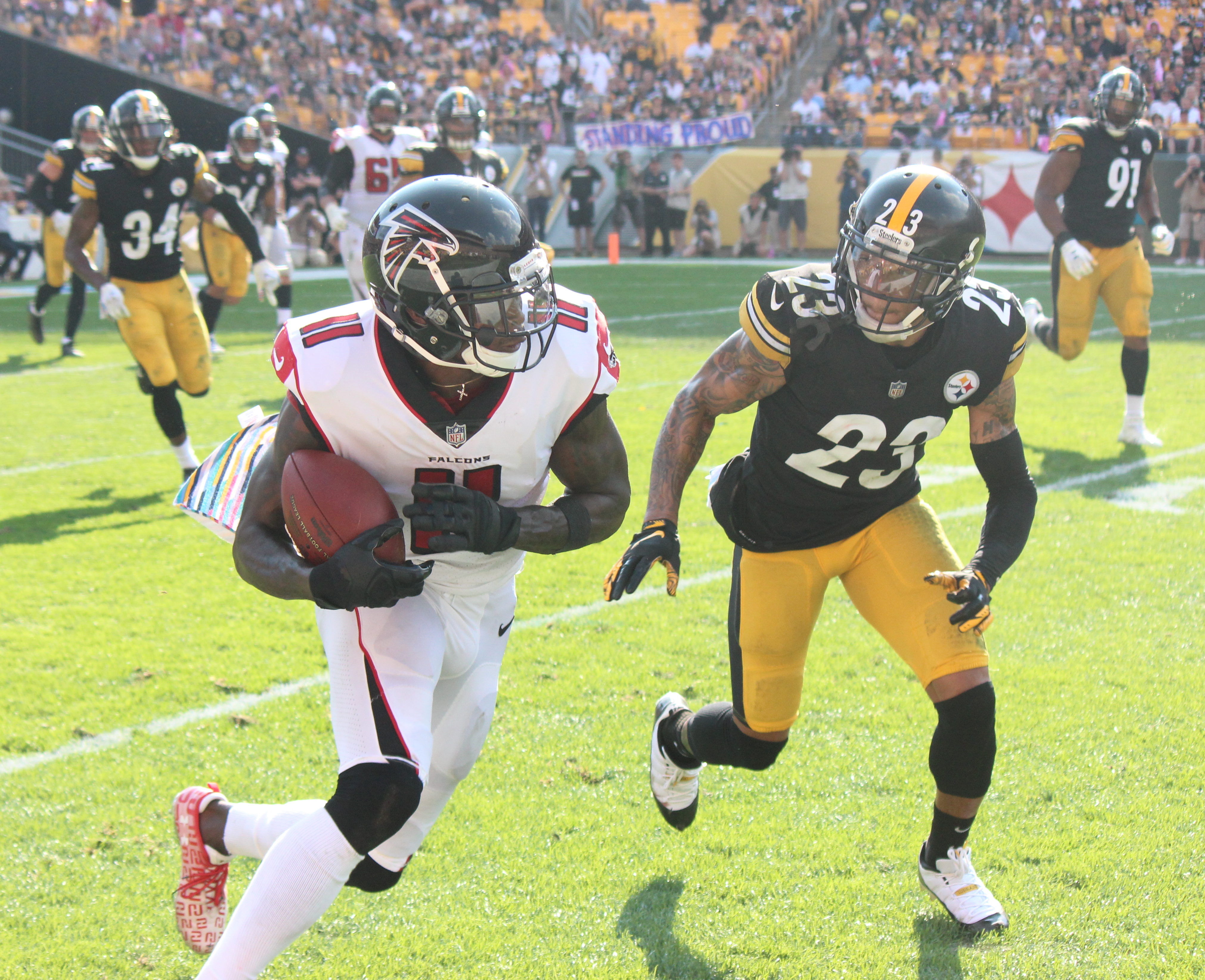Award-winning sports reporter and photographer, Brian Cook focuses on the direct hits performed by the Pittsburgh Steelers as they claimed victorious; winning 41-17 against the Atlanta Falcons this past Sunday at Heinz Field.