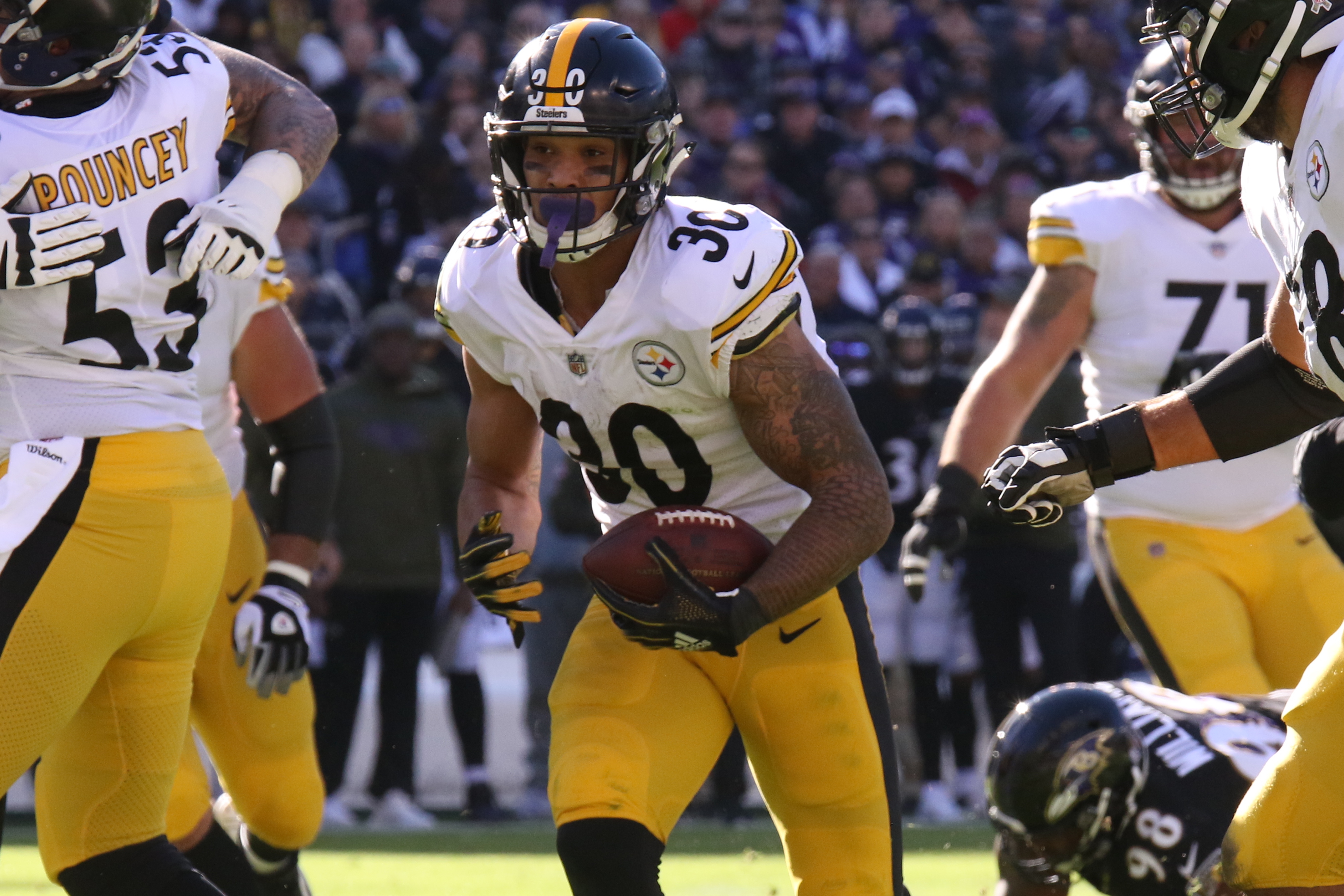 The Steelers are on a 4-game winning streak after defeating the Baltimore Ravens 23-13 at M&T Bank Stadium, Sunday. It was an AFC North win that keeps them in the catbird seat atop the division. Now with a record of 5-2-1 running back James Conner, referenced the last time these two organizations met. The Steelers came up short when they played on September 30. The score was 26-14. He acknowledged that it was imperative to get out of the gate early. “Last time we played them, we had some turnovers early and some penalties,” Conner said. “[We tried] to do the opposite of that and start out fast.”